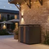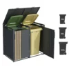 Un abri poubelles à toit plat 2 portes en acier galvanisé avec vérins à gaz conçu pour dissimuler vos bacs à déchets tout en embellissant votre extérieur.