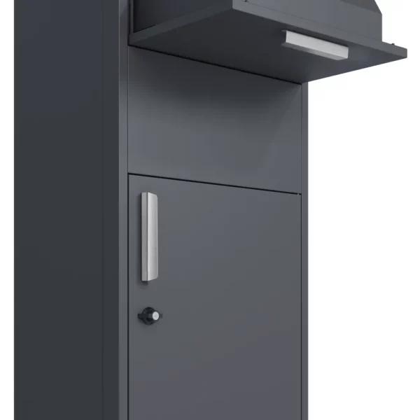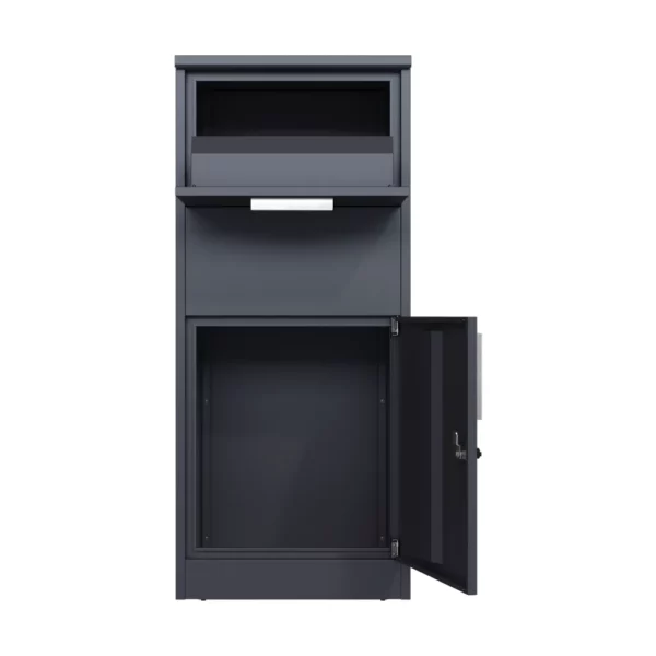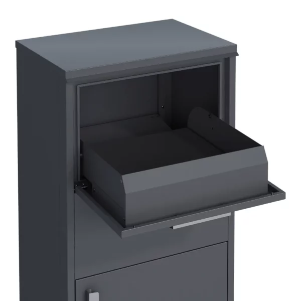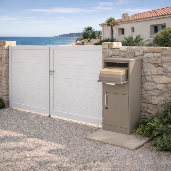 D’une part, la trappe supérieure basculante s’ouvre vers l’intérieur. Ainsi, elle autorise le dépôt du courrier. De plus, le retour automatique, par gravité et charnières, bloque toute récupération extérieure. D’autre part, le compartiment inférieur verrouillable permet la récupération du courrier et des colis. Concrètement, l’utilisateur ouvre une porte frontale équipée d’une serrure à clé. Par conséquent, le système protège efficacement le contenu contre le vol.
