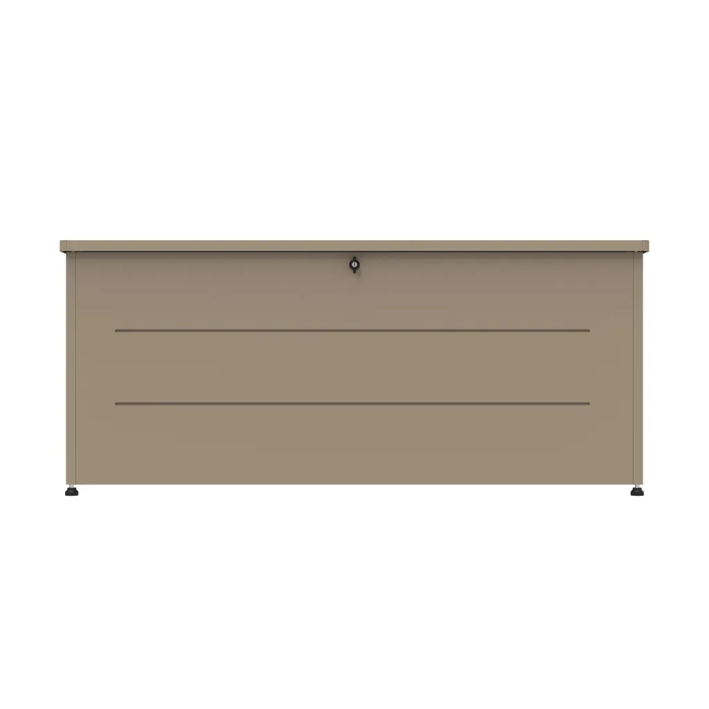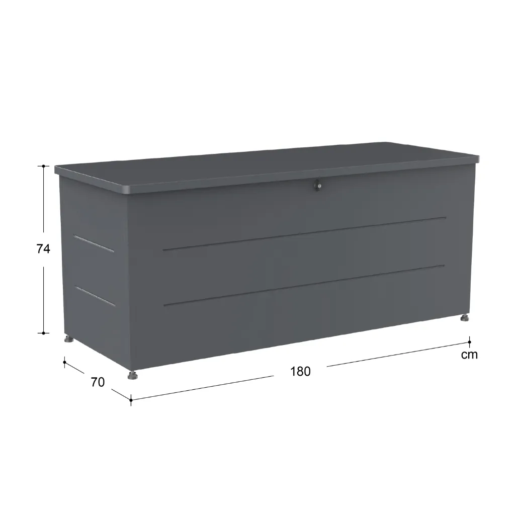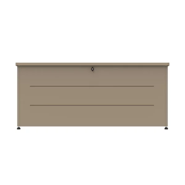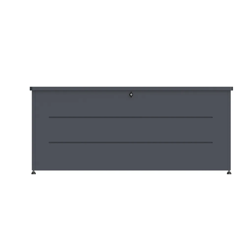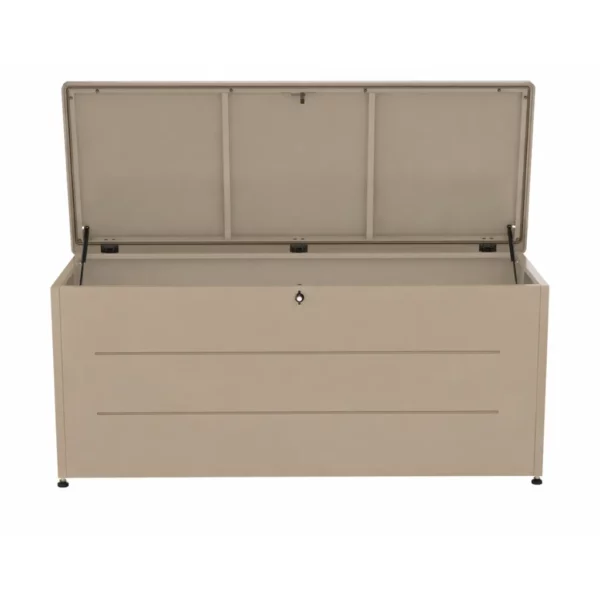 Fabriqué en acier galvanisé, ce coffre extérieur offre une excellente résistance dans le temps. En effet, il supporte les variations climatiques du quotidien. Sa structure robuste est renforcée par une peinture époxy. De plus, celle-ci améliore la protection contre la corrosion.