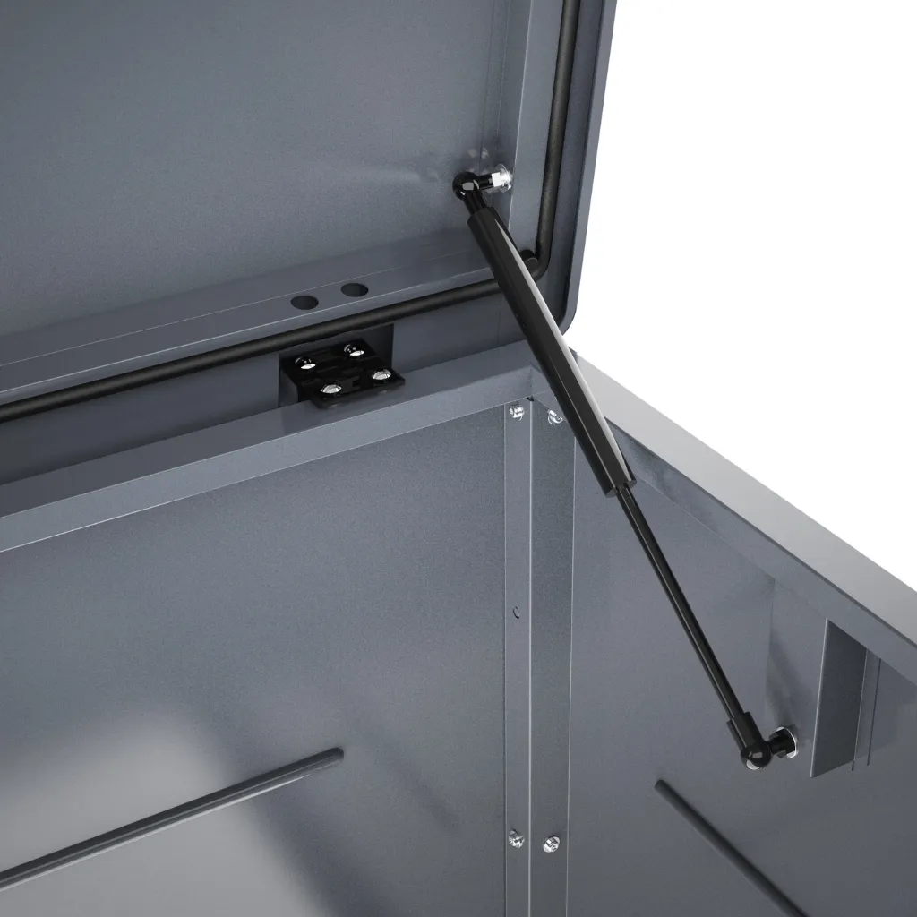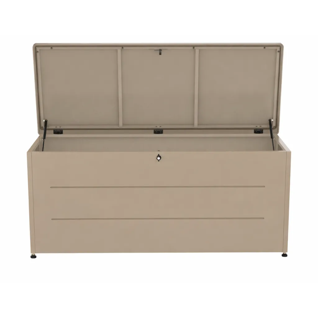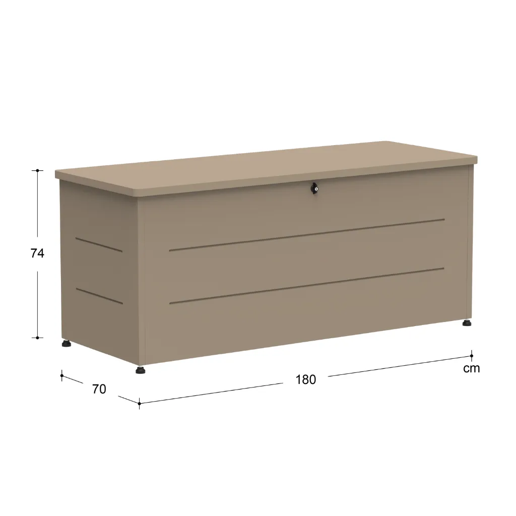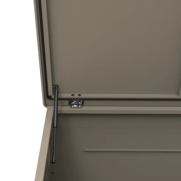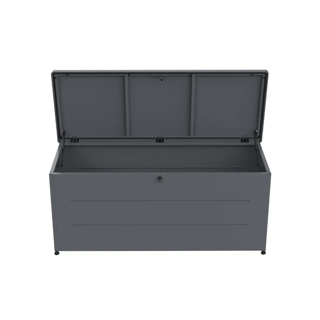 Fabriqué en acier galvanisé, ce coffre extérieur offre une excellente résistance dans le temps. En effet, il supporte les variations climatiques du quotidien. Sa structure robuste est renforcée par une peinture époxy. De plus, celle-ci améliore la protection contre la corrosion.