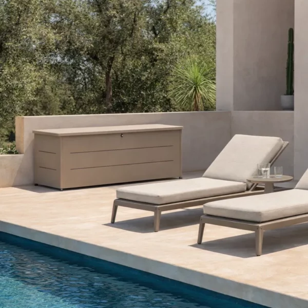 Disponible en taupe ou gris anthracite, il s’adapte à tous les styles d’aménagement extérieur. Ainsi, il trouve facilement sa place sur une terrasse, un balcon ou dans un abri de jardin. Par conséquent, il associe fonctionnalité et design contemporain.