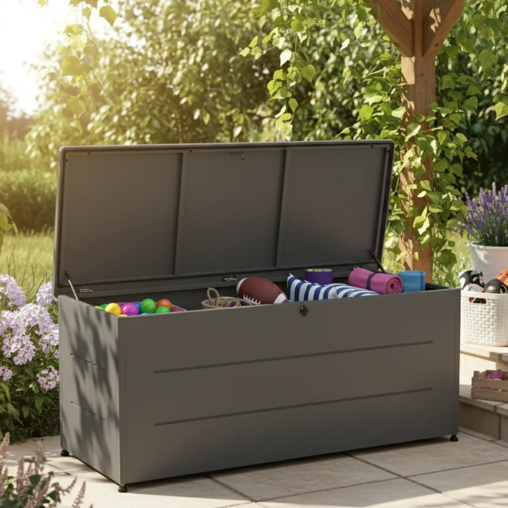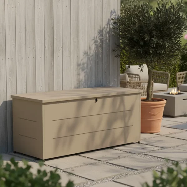 De plus, il peut supporter jusqu’à 150 kg de charge. Par conséquent, il combine solidité, praticité et fiabilité. En résumé, ce coffre extérieur est idéal pour organiser durablement vos espaces. Il valorise également votre aménagement extérieur.